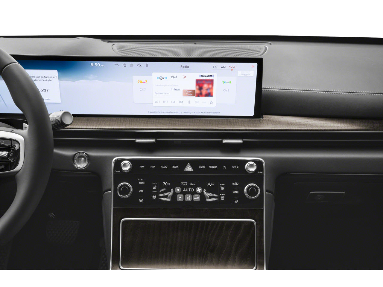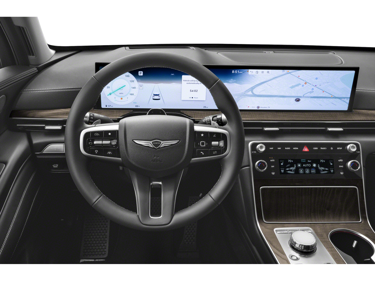 - Radio: AM/FM/SiriusXM/HD Bang & Olufsen Sound Sys -inc: 1400 watts, 18 speakers, 14 channel amplifier, 27" integrated OLED instrument cluster and navigation system, SiriusXM Radio w/90-day subscription (not available in AK or HI), cloud connected platform (cloud profiles, connected routing, dynamic voice recognition, OTA updates), wireless Apple CarPlay, wireless Android Auto, Bluetooth® hands-free phone system w/audio streaming, wireless phone charger, Wi-Fi hotspot, steering wheel controls, USB and Genesis Connected Services Wireless Apple CarPlay and wireless Android Auto are late availability.